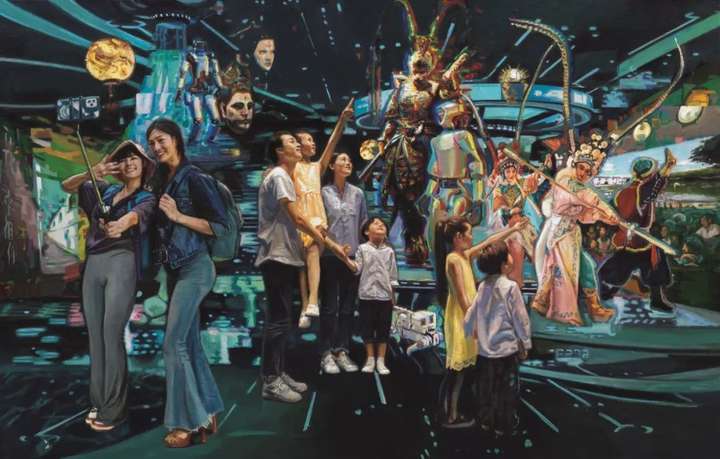 油画《文明的力气深化推进“文明+科技”“文明+旅行”“文明+民生”》,浙江省油画院集体创作。近年来,文明立异发明生机涌动,“文明+”跑出美好生活加快度。著作生动捕捉这一年代脉动,以科技馆为布景,经过描绘不同年纪、不同身份、不同集体的观众,凭借科技等力气乐享多元文明的场景,展示了文明与科技、旅行、民生交融开展趋势,以及其赋能公民美好生活的宽广空间。