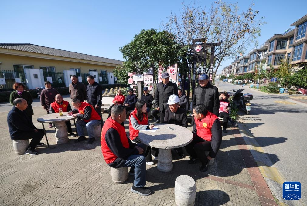 11月19日,吕山乡龙溪村的村民议事协商小组在村里的议事协商公园里就村务发展征集意见。