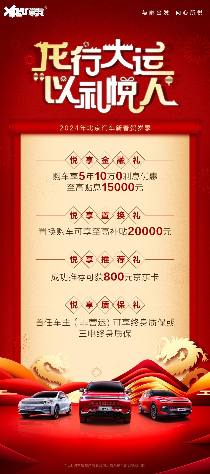 为了让更多在外的朋友能提早与久别的家人聚会,北京新X7想用户所想,推出了超高性价比的新年购车优惠方针,现在购车可享5年10万0利息优惠、至高贴息15000元、置换购车可享至高补助20000元、成功引荐可获800元京东卡、首任车主(非营运) 可享终身质保或三电终身质保等购车优惠。眼看着新年就要到了,返乡车票没着落,想自驾返乡的朋友,北京新X7的诚心现已给到了,下面就看你的了。